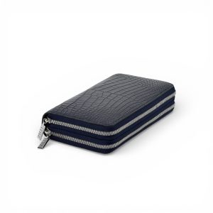 SR кошелек черный крокодил на двух молниях серебро с ручкой