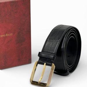 SR ремень крокодил джинсовый черный пряжка золото