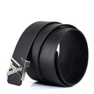 LV ремень черный того с синей монограммой классическая пряжка черный глянец