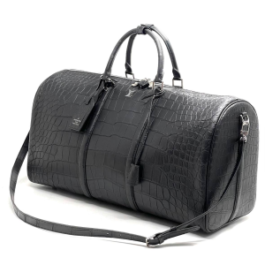 LV дорожная сумка крокодил черная с металлическим логотипом