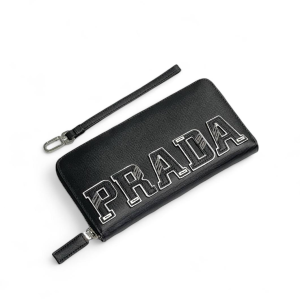 PRADA кошелек сафьяновая кожа черный, логотип из нашитых больших букв