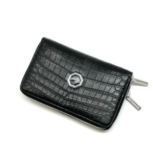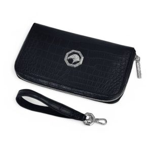 SR кошелек крокодил большой с ремешком без логотипа черный