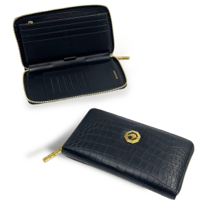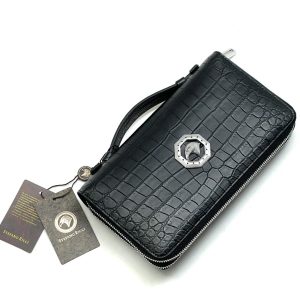SR кошелек крок черный на двух молниях с ручкой сверху