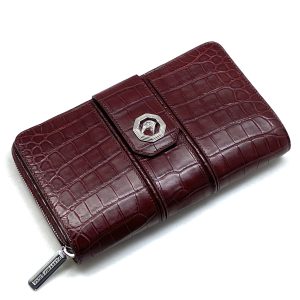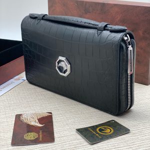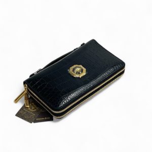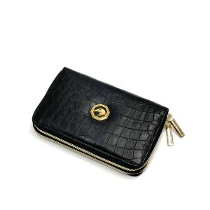 SR кошелек крокодил черный на двух молниях с ручкой сверху фурнитура золото
