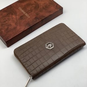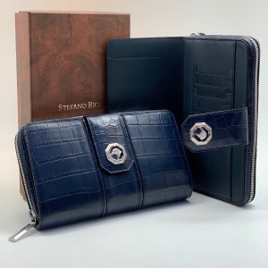 SR кошелек крокодил синий на двух молниях с ручкой сверху