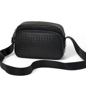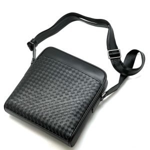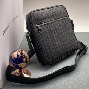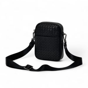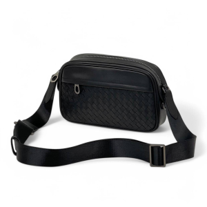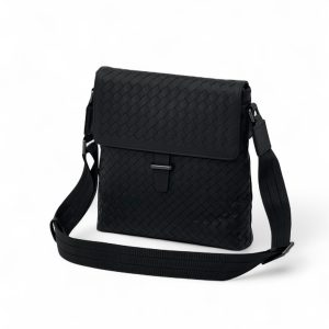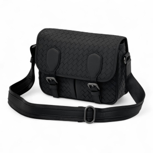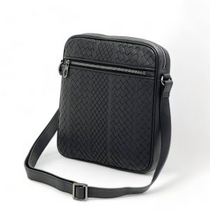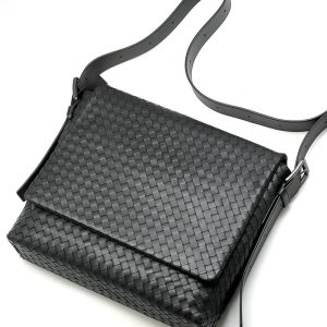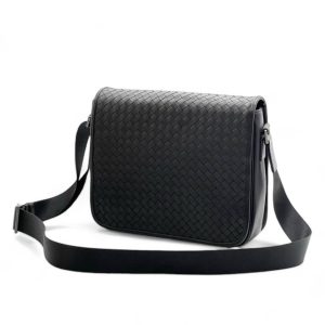 BV мессенджер мелкое плетение черная кожа теленка с клапаном и двумя передними карманами с ремнями на магнитах