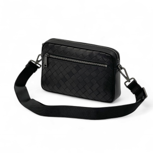 BV мессенджер теленок большой с карманом на молнии спереди черный с узорным плетением