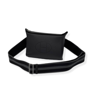HERMES мессенджер конверт с перфорированной эмблемой бренда цвет черный ремень в полоску