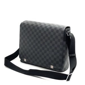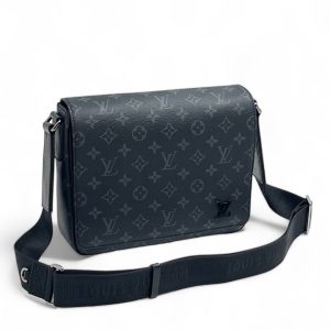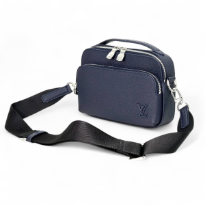 LV мессенджер District РМ синяя кожа тайга маленький с металическим с логотипом в цвет