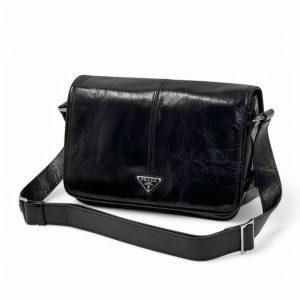 PRADA мессенджер черный из мягкой кожи с глянцевой отделкой с клапаном