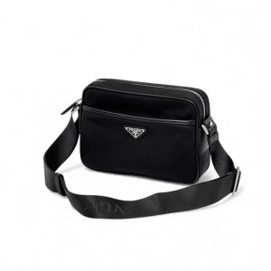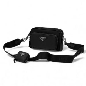 PRADА мессенджер с передним карманом на молниях, черный нейлон, с черной кожей по контуру