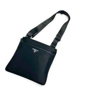 PRADА мессенджер узкий с передним карманом на молнии, Черный нейлон