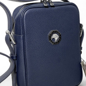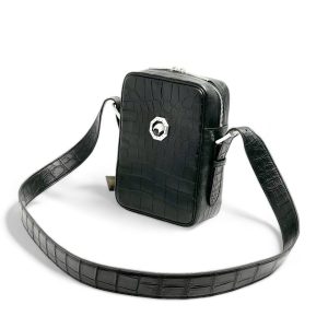 SR мессенджер черный, кожа крок, серебро фурнитура
