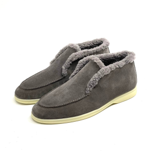 LORO PIANA лоферы высокие с мехом наружу на белой подошве серая замша