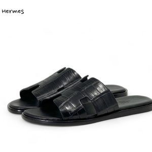 HERMES шлепанцы крокодил H черные