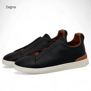 Ermenegildo Zegna кожаные кеды на коричневых резинках с белой подошвой и коричневой пяткой