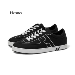 HERMES кеды кожа эпсон черного цвета на белой подошве
