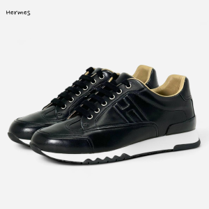HERMES кроссовки черные на белой подошве с черной вставкой