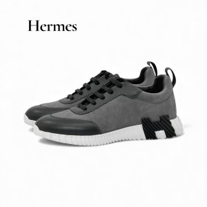 HERMES кроссовки серые с мембранной вставкой на белой подошве