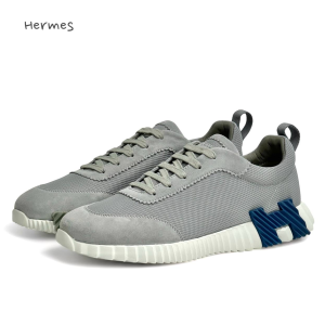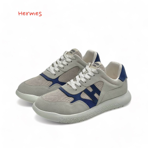 HERMES кроссовки серые с синей вставкой на белой подошве с мембраной