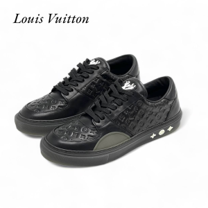 LV кроссовки кожа монограмм металлический логотип сбоку