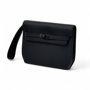 HERMES борсетка замок Kelly черного (цвета) кожа того черного цвета