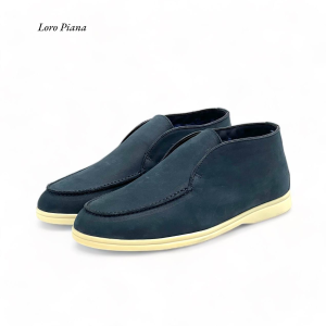 LORO PIANA лоферы низкие вельветовая ткань синие с белой подошвой
