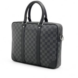 LV портфель с ремнем серая шашка кармашек сбоку между кожаными полосами уголки кожаные