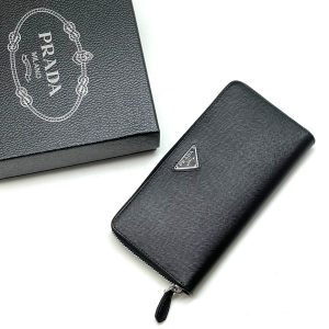 PRADA кошелек Taiga средний треугольный логотип по середине черный