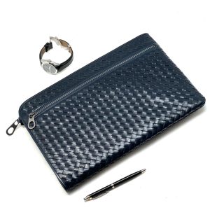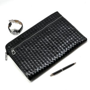 BV Папка черная плетеная кожа теленок с наружним карманом на молнии