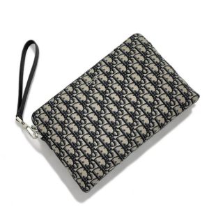 DIOR борсетка тканевая с черным жаккардом на бежевом фоне