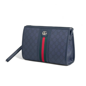 GUCCI борсетка синяя в монограмму из канвы с зелено-красной полосой по центру