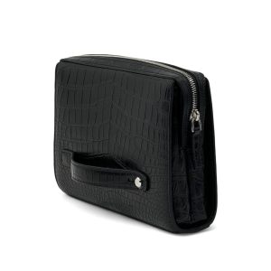 HERMES борсетка из черной кожи крокодила