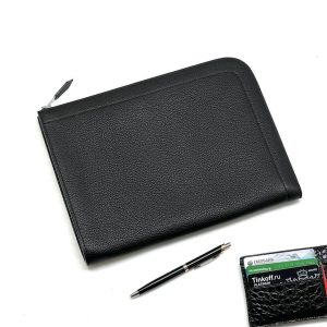 HERMES папка А4 из кожи того черная молния сверху и снизу