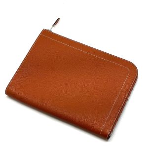HERMES папка А5 кожа того темно-оранжевая с белой строчкой