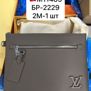 LV папка серая того с металлическим лого в цвет и хлястиком