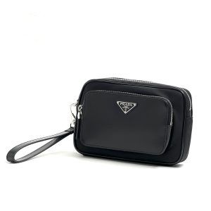 PRADA борсетка черная нейлоновая с кожаным карманом на молнии