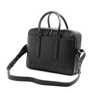 BV портфель широкий из черной кожи теленка в новом плетении с открытым карманом снаружи