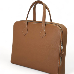 HERMES портфель кожа без плечевого ремня с глубокой молнией классический зернистая кожа горчичного цвета