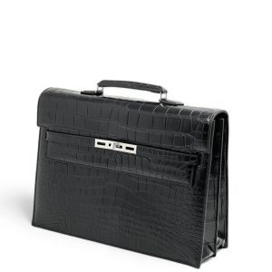 HERMES Портфель крокодил черный с клапаном с замком на двух лямках