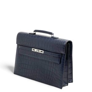 HERMES Портфель крокодил синий с клапаном с замком на двух лямках