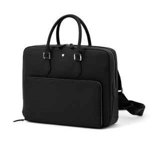 MONTBLANC портфель кожа сафьяно черного цвета с одним отделением на молнии и карманом спереди