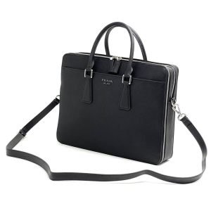 PRADA портфель кожа софьяно черный фурнитура серебро с двумя отделениями