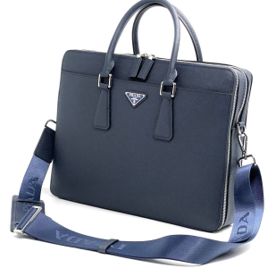 PRADA портфель кожа софьяно мягкий синий с двумя молниями
