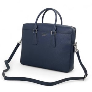 PRADA портфель кожа софьяно синий фурнитура серебро с двумя отделениями