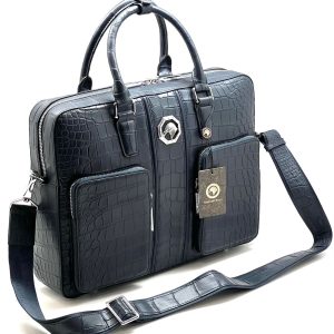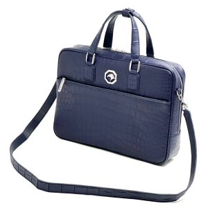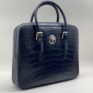 SR портфель кожа крокодила синий с клапаном и застежкой