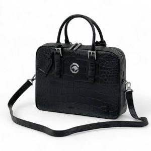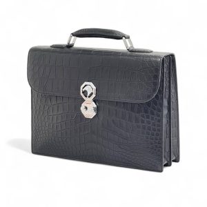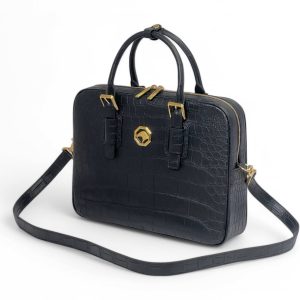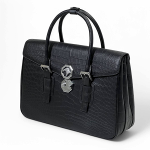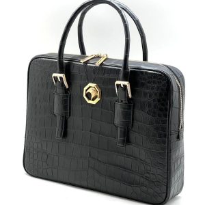 SR портфель крокодил ручки с пряжками черный фурнитура золото