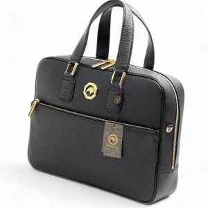 SR портфель в черной коже того с большим карманом на молнии фурнитура золото