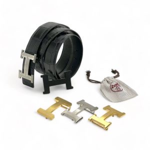 HERMES ремень крокодил джинсовый съемная пряжка черный
