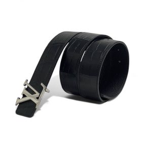 BRIONI ремень крокодил брючный черный